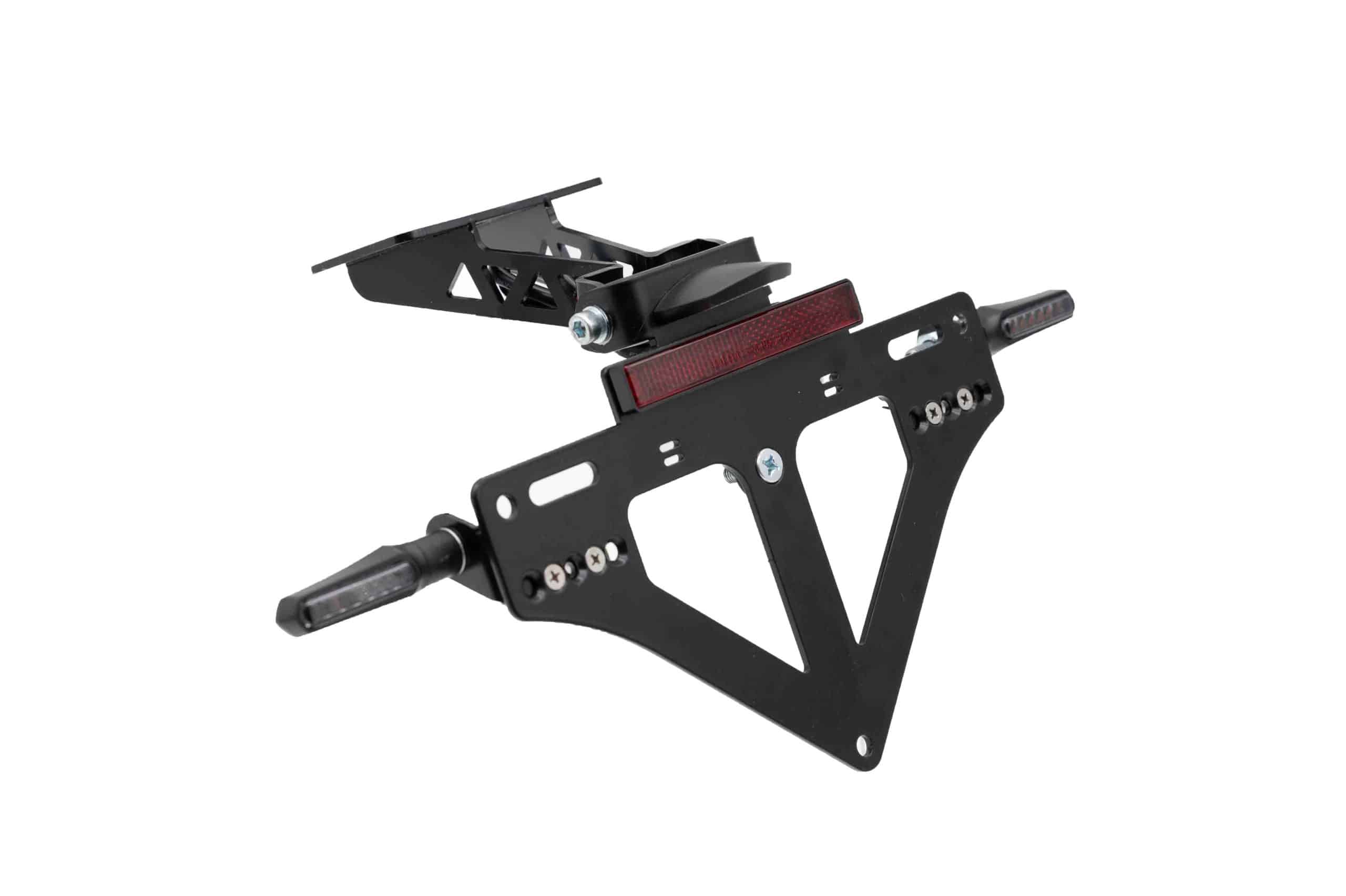 Suport număr de înmatriculare pentru Yamaha MT-07 (Modele 2021) și MT-07 Pure (Modele 2024). Include lumină pentru placă și reflector. Compatibil cu semnalizatoare accesorii (M8/M10).