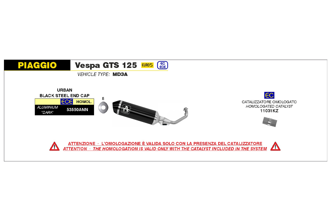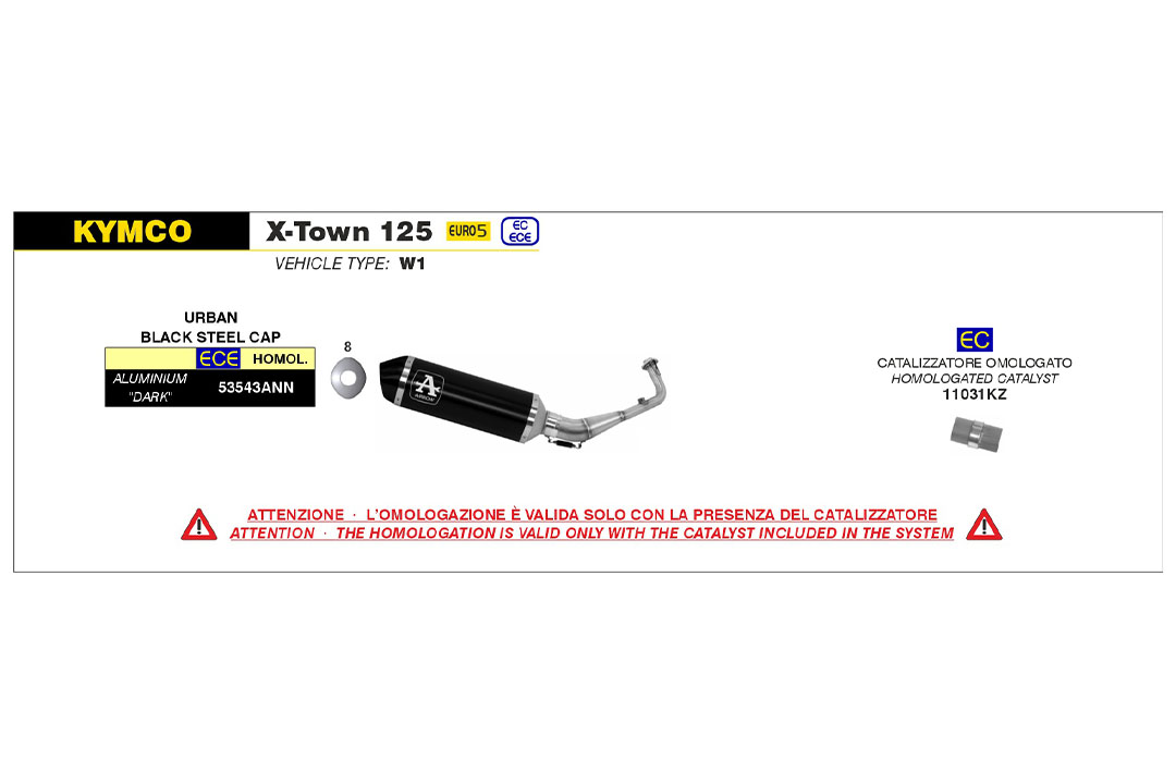 Catalizator ARROW Euro 5 11031KZ, pentru omologarea sistemului de eșapament ARROW AR-53544ANN, AR-53545ANN, AR-53548ANN și AR-53550ANN