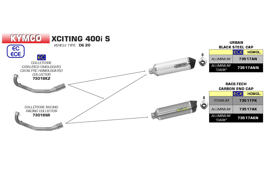 Galerie evacuare ARROW pentru Kymco XCiting 400i S 2018-19, cu catalizator