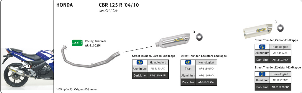 Tobă finală ARROW THUNDER pentru Honda CBR125R 2004-2010, Aluminium