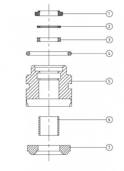 Capac de protecție (sigiliu de praf) Inel de susținere Inel Quad sau X (sigiliu de ulei) O-ring Cap de etanșare (cap de sigiliu) Bucșă de ghidaj (bucșă de ghidare) Tampon de cauciuc (tampon de lovire)