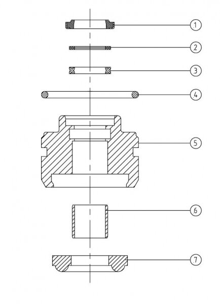 Capac de protecție (sigiliu de praf) Inel de susținere Inel Quad sau X (sigiliu de ulei) O-ring Cap de etanșare (cap de sigiliu) Bucșă de ghidaj (bucșă de ghidare) Tampon de cauciuc (tampon de lovire)