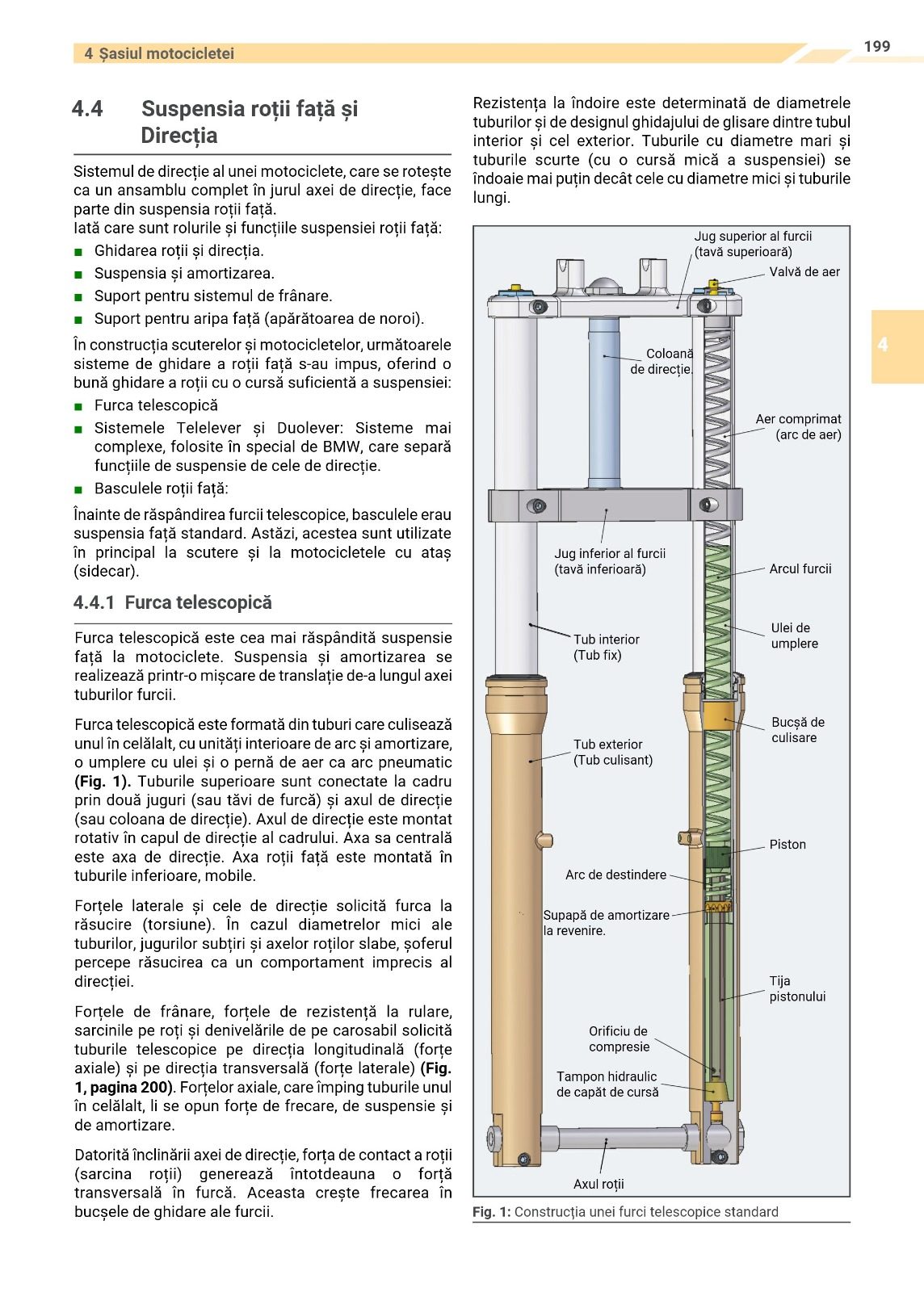 • Structura șasiului și a suspensiei – explicații tehnice despre construcția cadrelor, furcilor, amortizoarelor și geometria motocicletei;