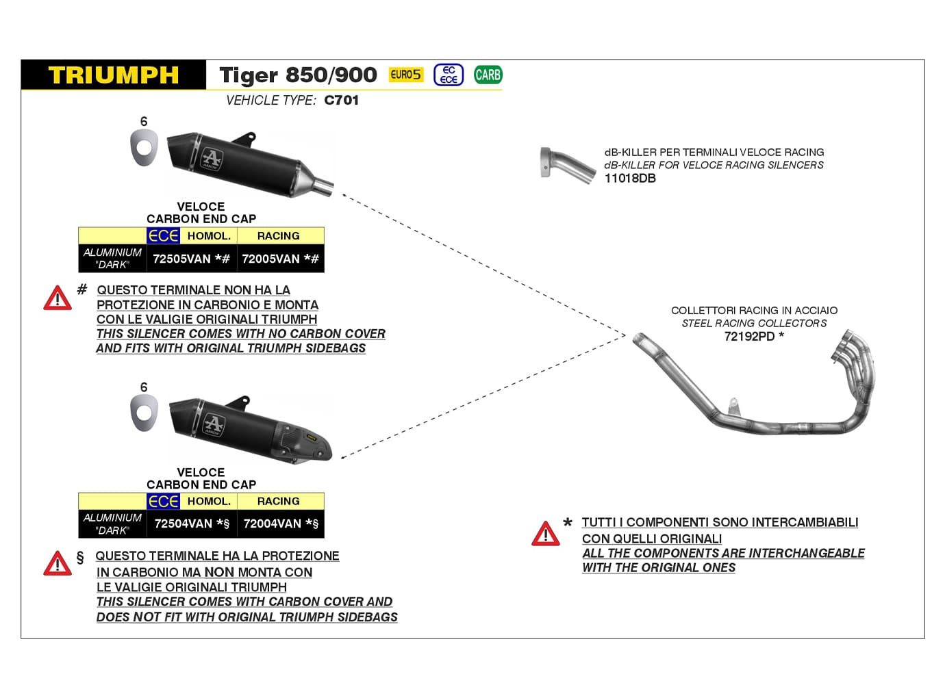 ARROW Racing din oţel inoxidabil pentru Triumph Tiger 900, tip C701, începând cu anul modelului 2020 – Acest ARROW nu este omologat pentru utilizarea în traficul public!