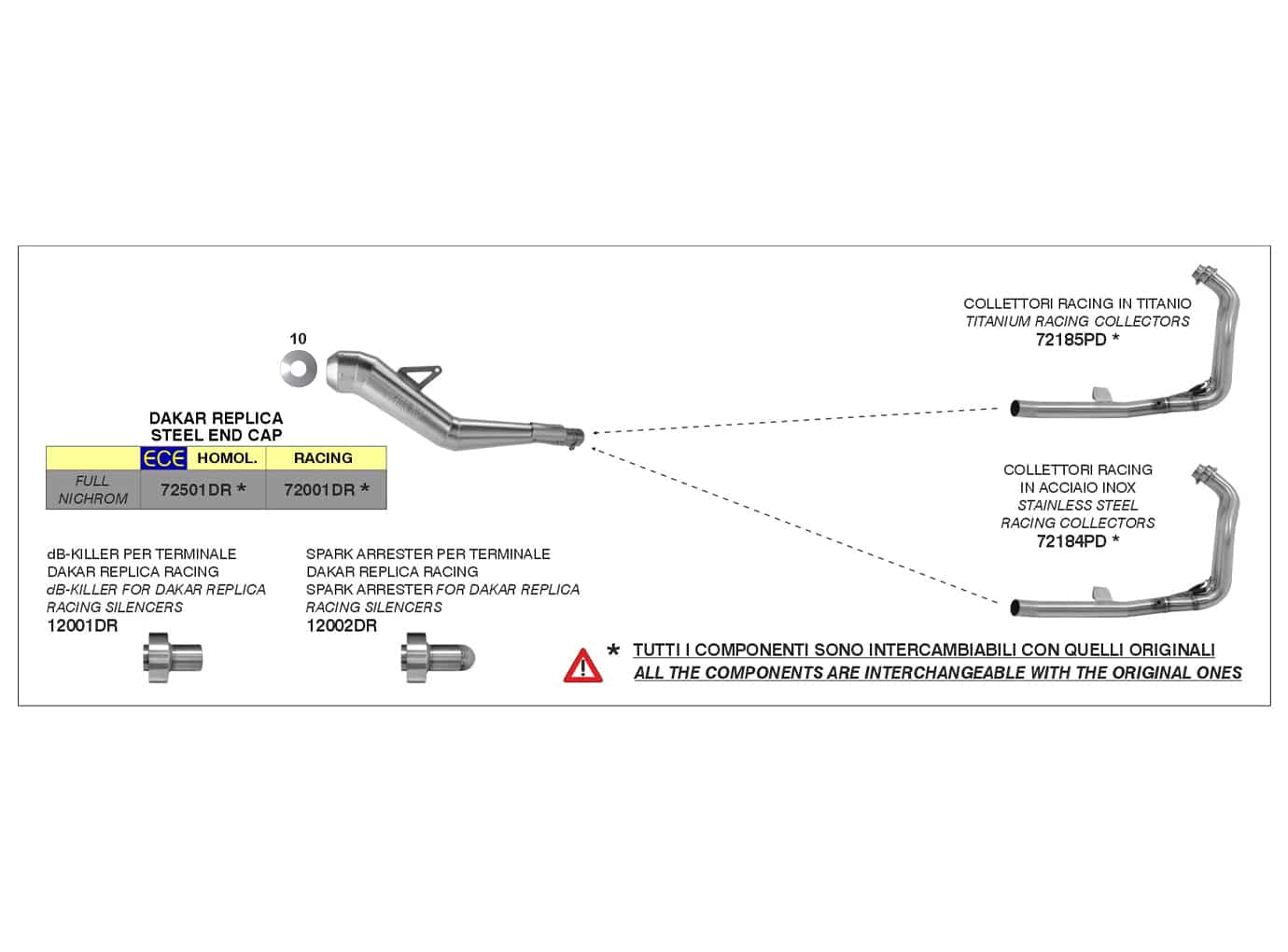 ARROW Racing-Tobă finală DAKAR REPLICA din oțel inoxidabil, fără omologare pentru drumurile publice.