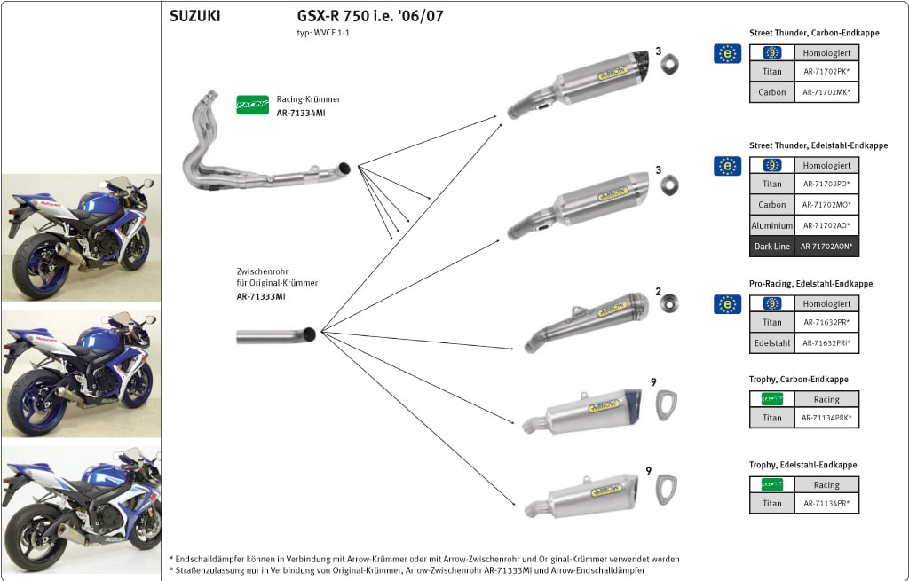 Pentru utilizare cu tubul intermediar ARROW AR-71333MI la galeria de evacuare original sau la galeria de evacuare ARROW AR-71334MI