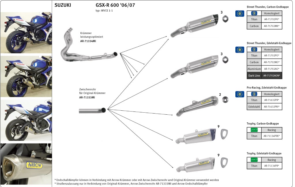 Tobă finală ARROW PRO-RACING pentru Suzuki GSX-R 600 / 750 2006-2007, Titan